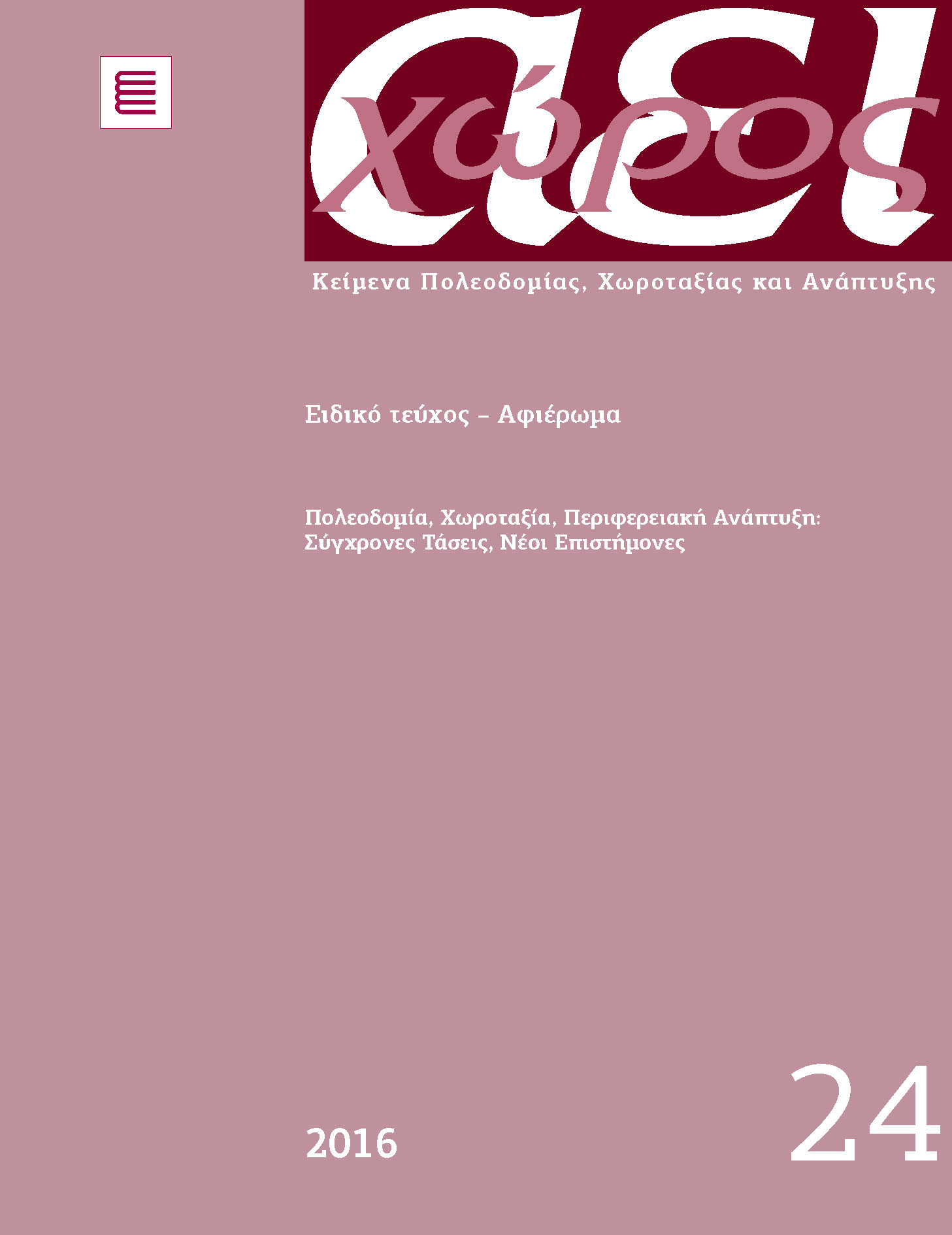 Αρ. 24 (2016): Πολεοδομία, Χωροταξία, Περιφερειακή Ανάπτυξη: Σύγχρονες Τάσεις, Νέοι Επιστήμονες